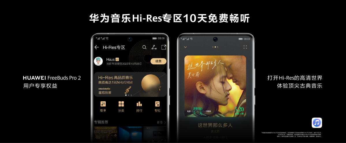 除了创新技术之外,华为FreeBudsPro 2还得到了双高清音频认证,声学性能荣获HWA/Hi-ResAudio Wireless金标认证,成为全球首款获得双高清音频认证的真无线耳机,为消费者带来了更加纯粹、更加怦然的聆听体验。还有帝瓦雷调音,缔造出低音澎湃、细节丰富的纯净音质,让音乐创作者的微妙情感在起伏的旋律、张弛的节奏中自然流淌。为了让消费者能够更直观的感受到高清音乐的品质,华为FreeBudsPro 2提供用户专享权益,在华为音频Hi-Res专区可享10天免费畅听,打开高清世界,体验高清音乐带来的至臻听感。