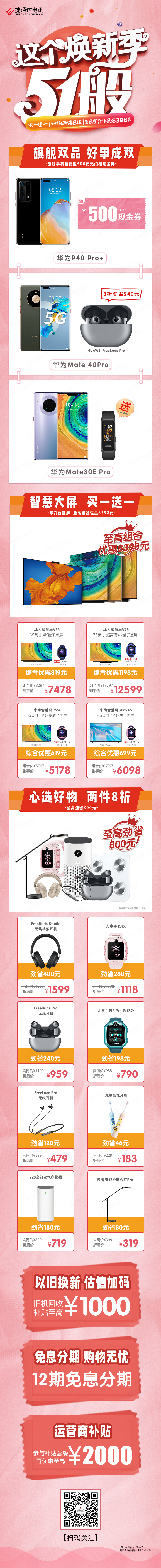 这个焕新季五一般,华为好物买一送一,两件8折,至高优惠8398元