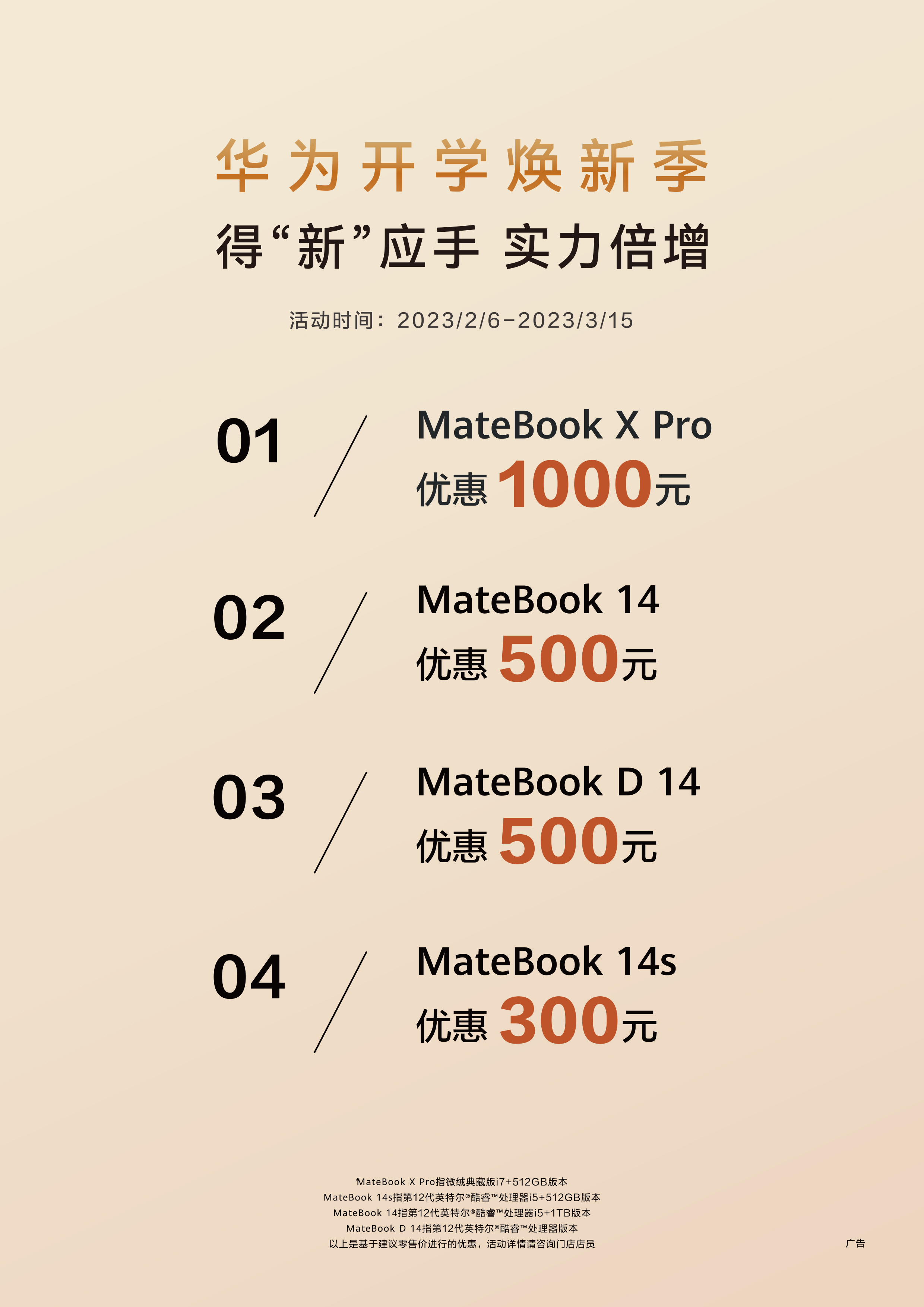 当前位置:主页 > 新闻中心 > 新品速递 > 华为开学季,焕新好物至高优惠1000元